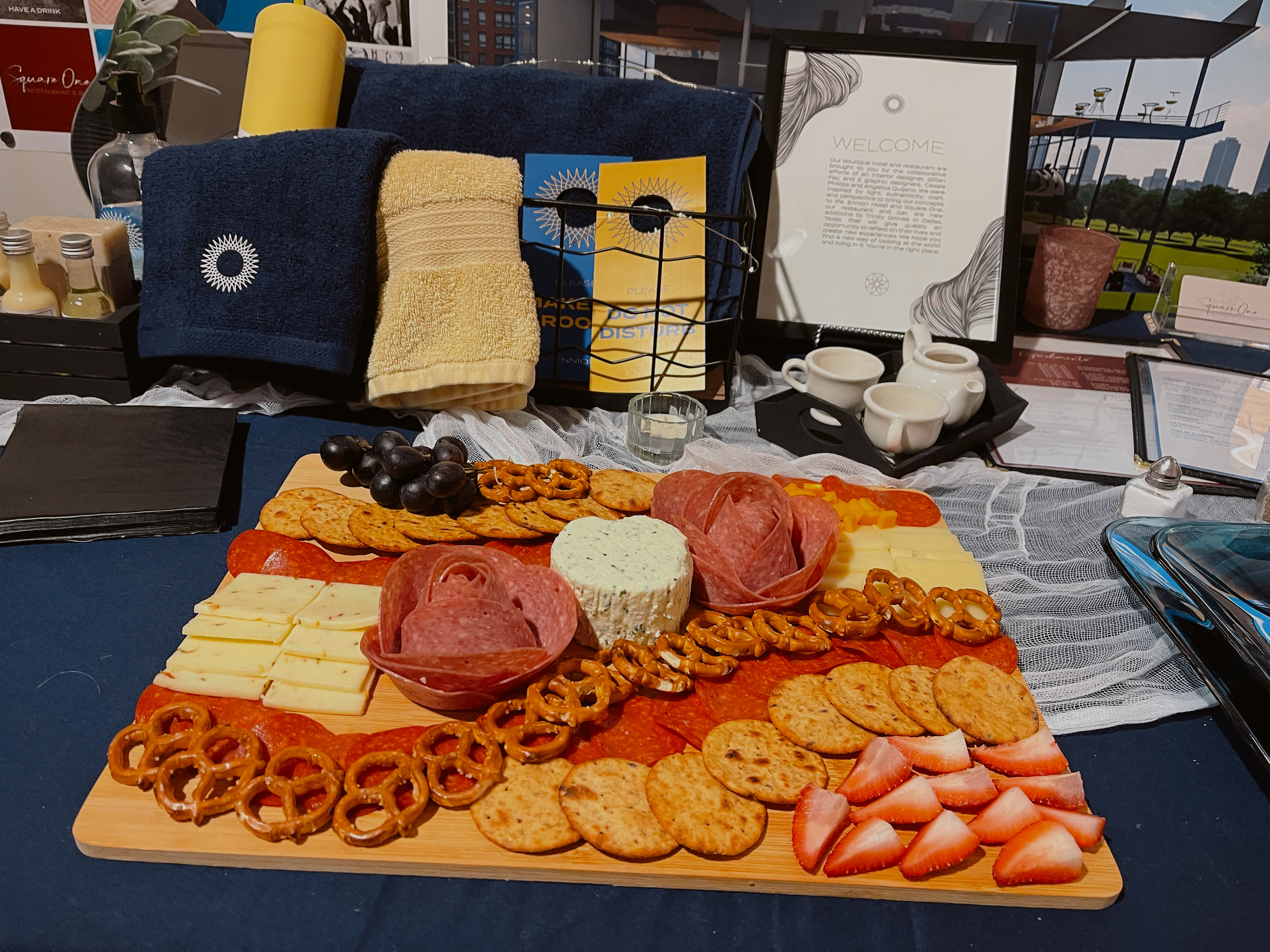 Ennion Hotel and Square One Restaurant are a collaboration of an Interior Designer, Gillian Fay, and two graphic designers, Cassie Phillips and Angelica Quijano. For this project designers had to answer the question "What if?", and create an identity for a hotel and restaurant located in Trinity Groves, Dallas. For our concept, we decided to do "What if a hotel was a Reflection?" and "What if a restaurant was a Canvas?".